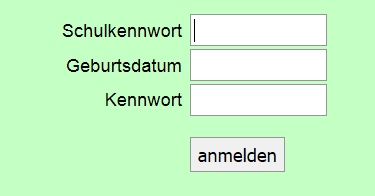Schulkennwort: diese Feld erscheint möglicherweise nicht, wenn Sie einen ensprechenden Link der Website Ihrer Schule benutzt haben.